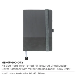 Hard Cover PU Notebooks in A5 Size with Metal Plate Bookmark