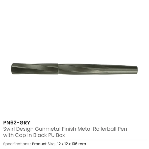 Rollerball Pens Swirl Design in Gunmetal Finish with PU Leather Box